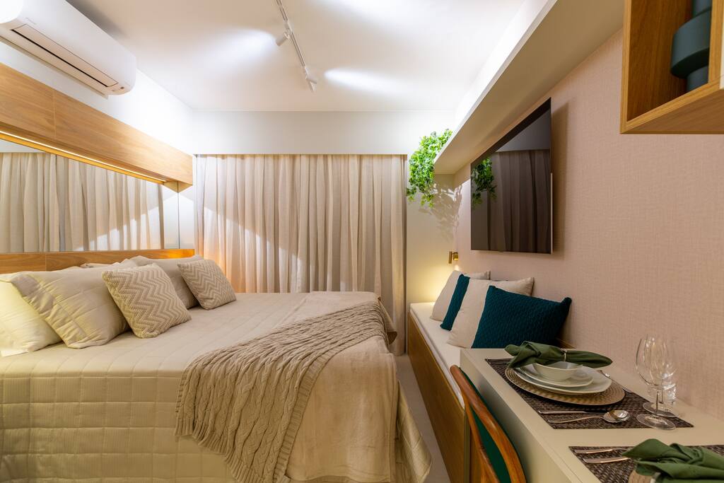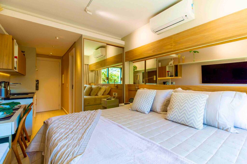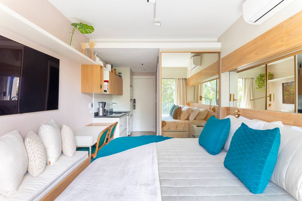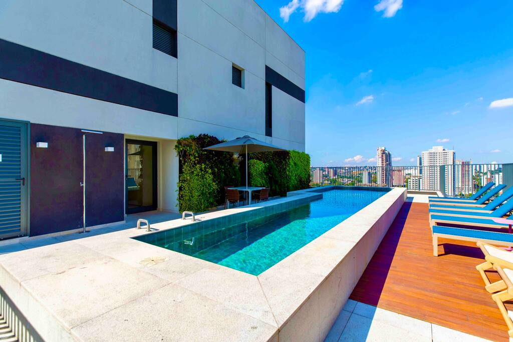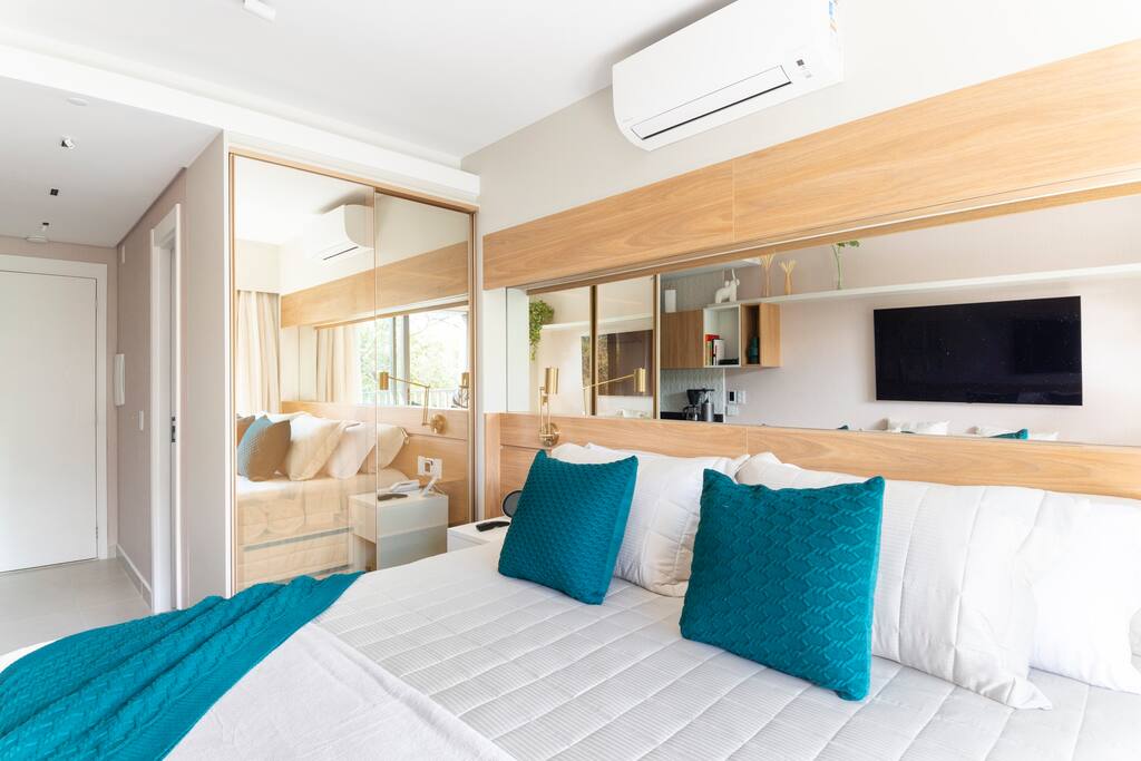 New studio, very well decorated and equipped, with all the necessary amenities for your stay. Fully automated, comfortable, cozy. The building is modern with an excellent leisure infrastructure: swimming pool, gym, ballroom with bar, coworking, laundry and bike rack. It has a green view of the square, the street is quiet and easily accessible. It is located between the neighborhoods of Moema, Brooklin and Vila Olimpia, 5 minutes from Shopping Ibirapuera and 15 from Congonhas Airport.
