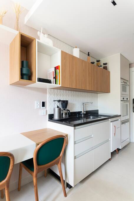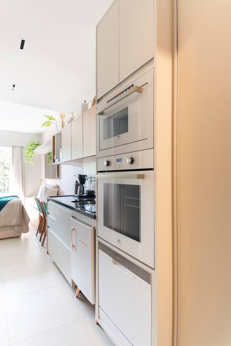 The space has a cooking tower with oven, microwave and dishwasher, minibar, induction cooktop, ceramic pots, utensils, crystal glasses and bowls, porcelain plates, cutlery, fondue set. We offer appliances such as: blender, mixer, food processor, toaster, electric kettle, coffee maker, hairdryer, steam iron, Oled TV, air conditioning, blackout curtains, soft and comfortable bed and bath linen, a super king bed and an Alexa so you can enjoy good music.